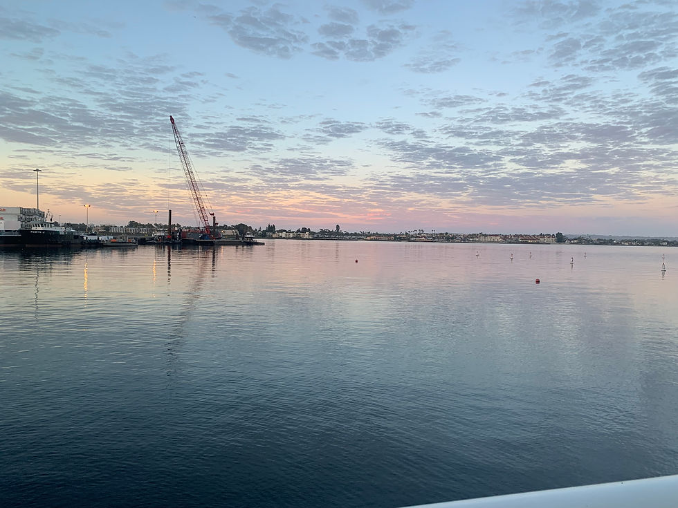 I’m an early riser. I like waking up and getting my day started, especially with a nice bowl of oats. For this trip we had been told we had $10 to spend at the hotel Starbucks each morning to get breakfast. I walked downstairs and got some oatmeal and a refresher (that I didn’t drink, I was just there for the oats). I walked outside to the cool bay air and found a spot to watch the sun finish rising and eat. I went for another walk this morning and saw more of the USS Midway and more of the pier that I hadn’t seen the day before just taking in the morning sun rising over the water.